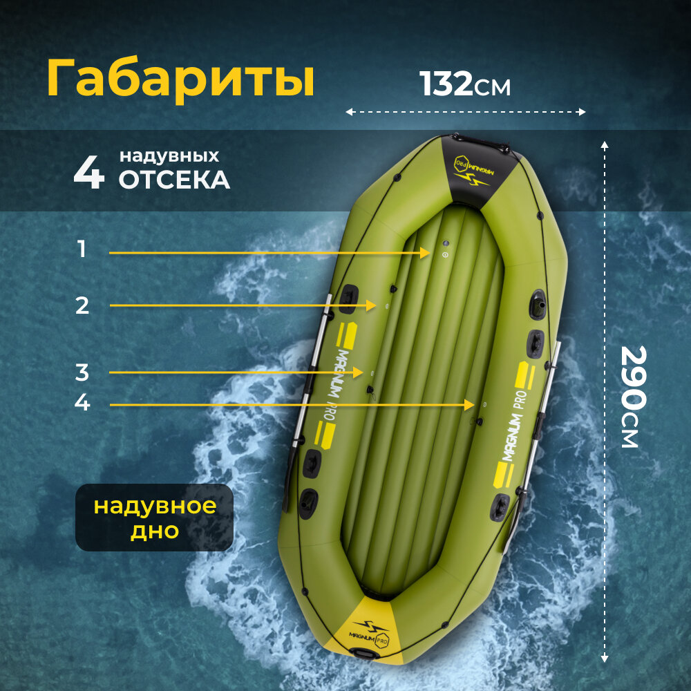 10 цен на Лодка ПВХ Magnum PRO 300, грузоподъемность 290кг, надувное дно, двухместная, зеленая