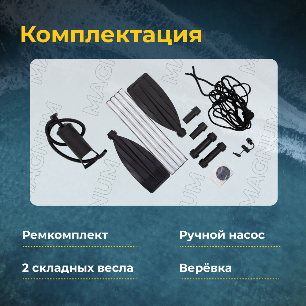 Лодка Magnum PRO 300, лодка ПВХ, двухместная, под мотор, для рыбалки, гребная грузоподъемность 290 кг 17 490 ₽