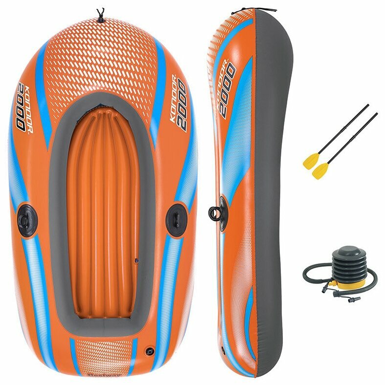 Лодка надувная BESTWAY Кondor 2000 185*97 см с вёслами и ножным насосом 61142