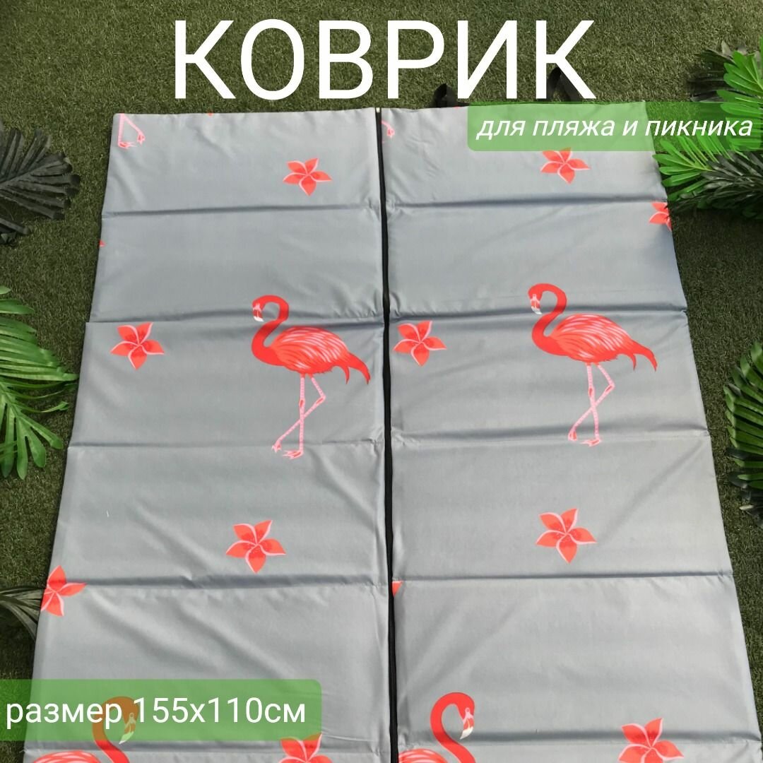 Коврик двойной на молнии 155x(55+55)x1,0 см,6 сложений, наполнитель пенка, Фламинго на сером, арт. 1166 информация: