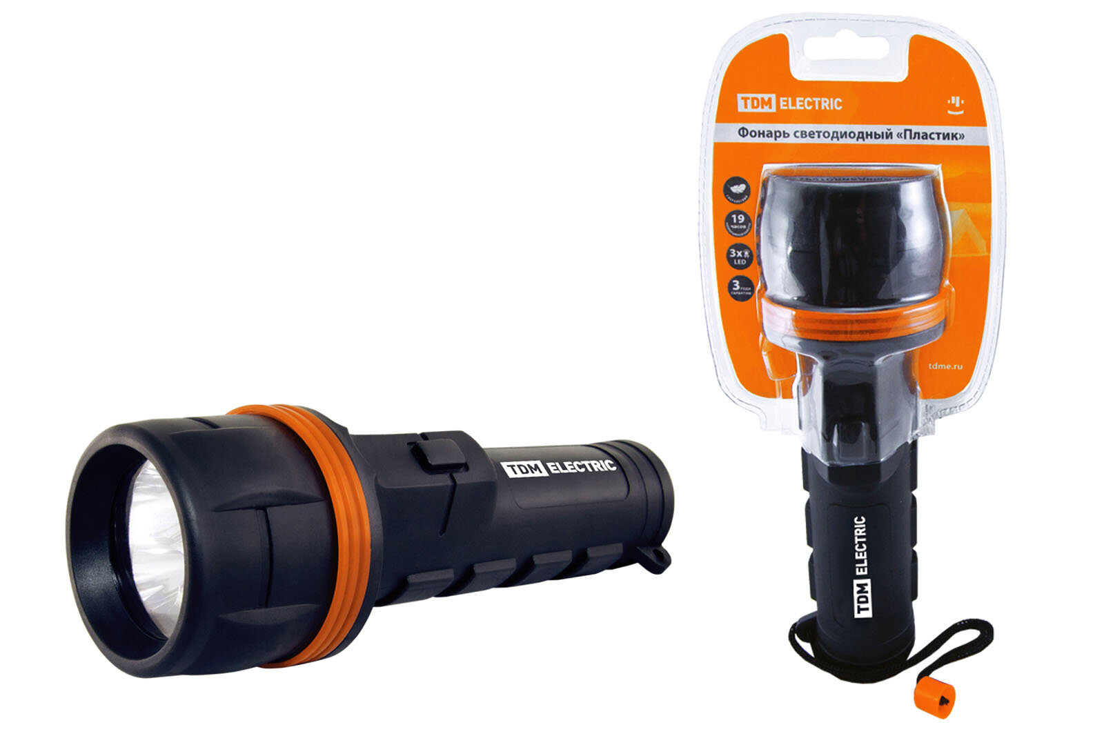 Фонарь светодиодный TDM "Пластик" 7LED, влагозащита, 21лм/Вт, батарейки 2D, черный информация: