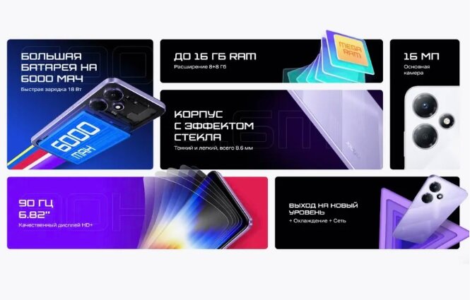 Характиристики этого товара не найдены!Отзывы на 6,82" Смартфон Infinix Hot 30 Play 8/128 ГБ (X6835B) черный NFC MIRAGE BLACK 6000mAh EAC