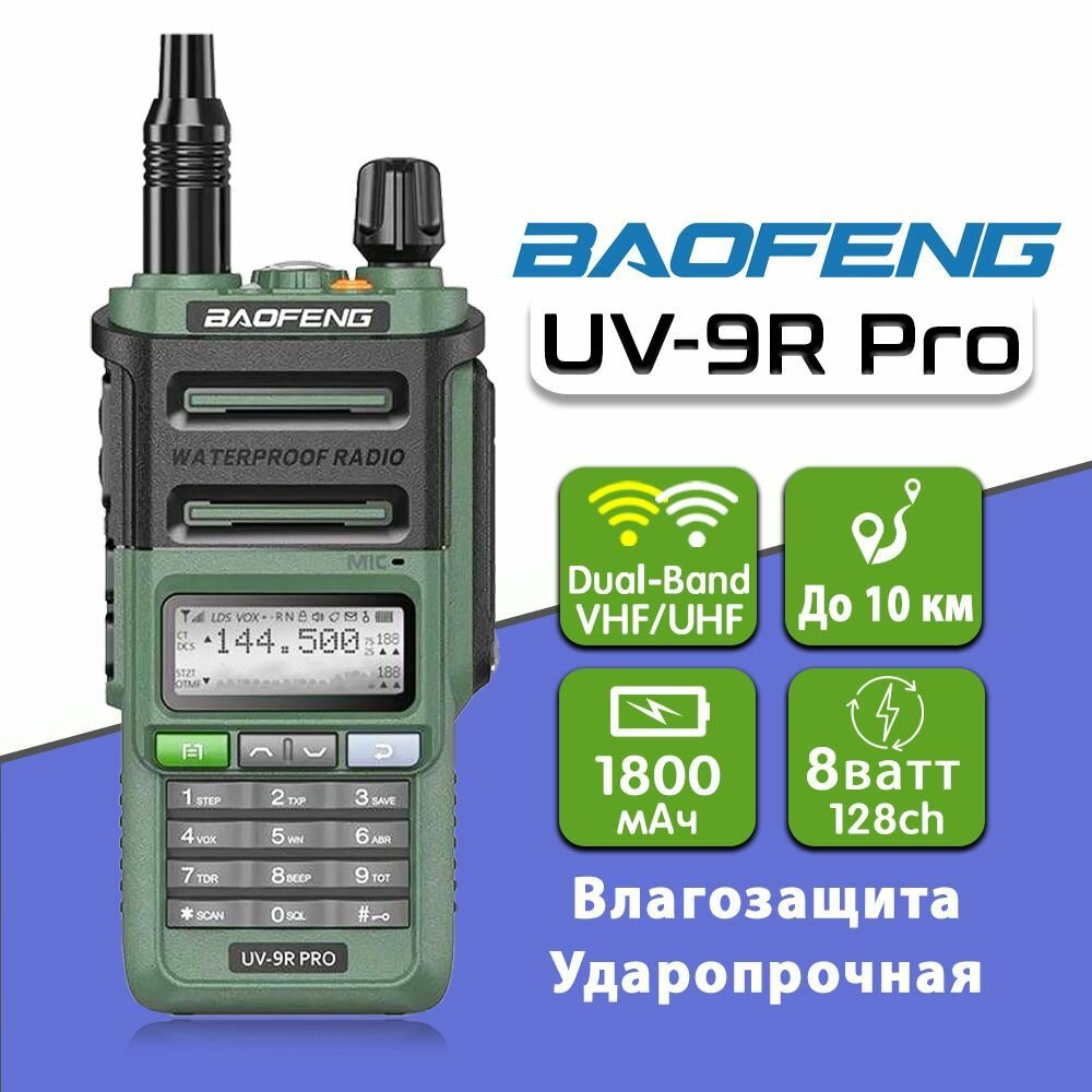 Рация Baofeng UV-9R Pro, Цвет Зеленый (Рация Baofeng UV-9R Plus Pro) / новинка 2022