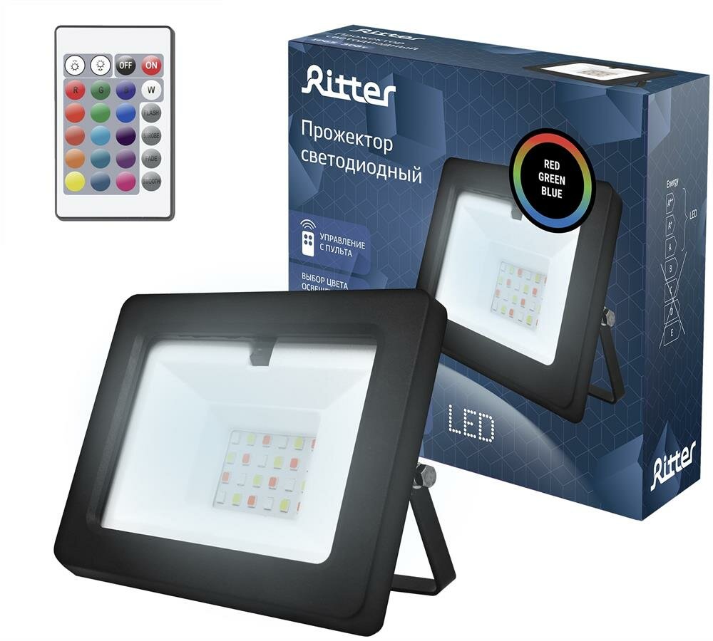 Прожектор светододный RITTER RGB 50Вт IP65 с пультом ДУ черный 4 378 ₽