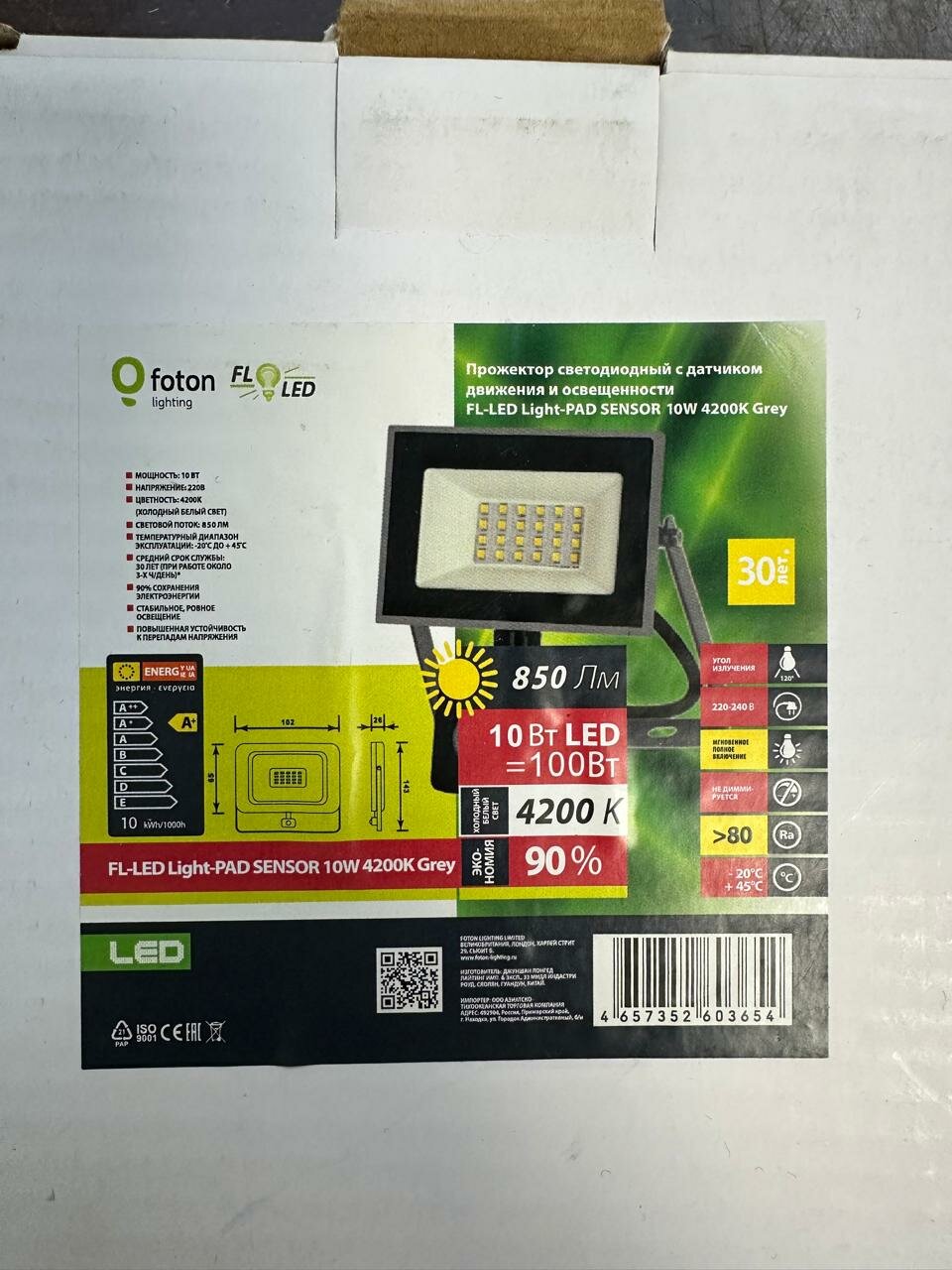 Отзывы на Прожектор светодиодный с датчиком FL-LED Light-PAD Sensor 10W 4200К 220V 850Lm IP65 Grey Foton 603654