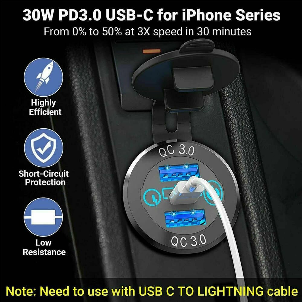 Разъём USB в авто врезной/ Розетка USB в прикуриватель с вольтметром/ Переходник USB в автомобиль, адаптер разъема прикуривателя, разъем прикуриватель розетка, розетка в прикуриватель, адаптер в прикуриватель RECXON UFC-05, синяя подсветка