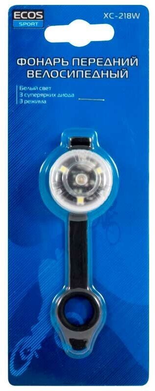 Фонарь ECOS XC-218W, передний, LED, 3 режима, влагозащищенный, батарейки информация: