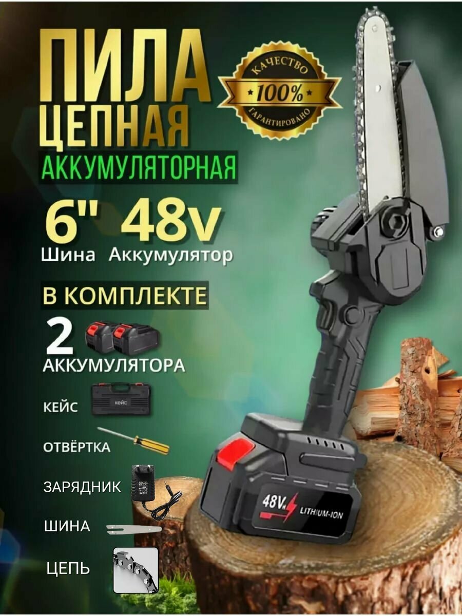 Отзывы на Мини пила цепная, аккумуляторная, с кейсом, 48v, 2 аккумулятора