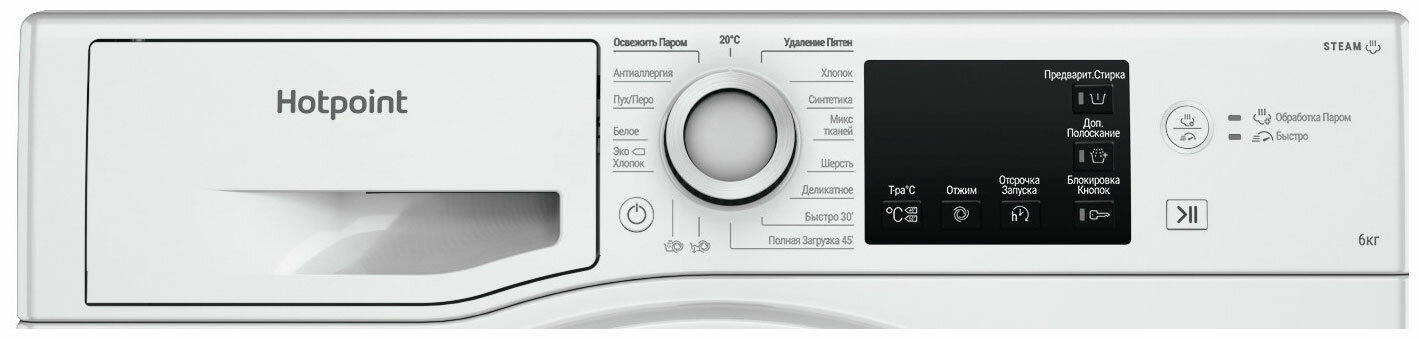 Отзывы на Узкая стиральная машина Hotpoint , белая/6кг/1000об мин/16 программ/цифр. дисплей/коллекторный двигатель/пар