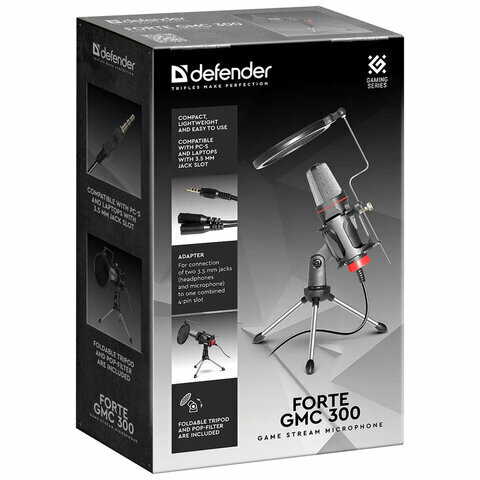 Микрофон игровой DEFENDER Forte GMC 300, кабель 2,4 м, 120 дБ, с мембраной, для стриминга, 64630 В комплекте: 1шт.