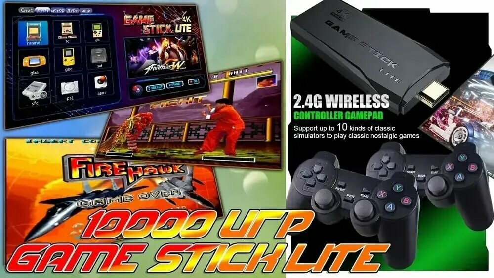 10 цен на Игровая приставка Game Stick Lite, 15000 игр, 64ГБ, беспроводная, портативная