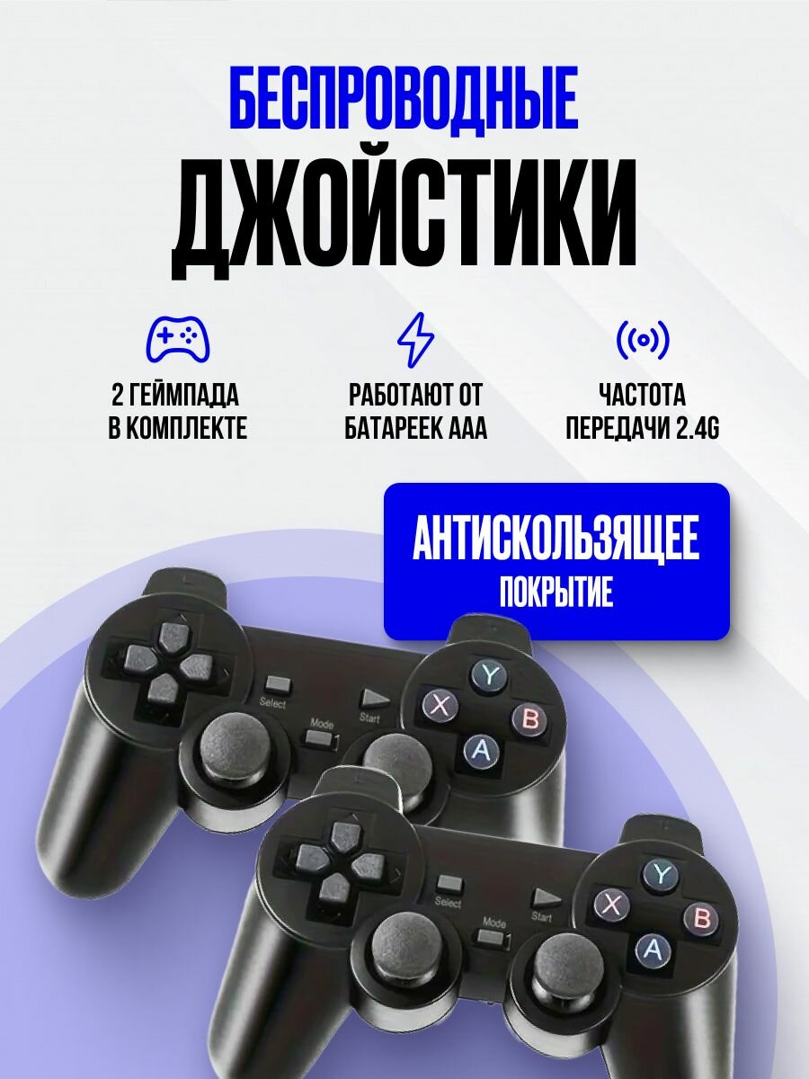 | Дополнительная информация | Встроенная память 64 GB , 2 беспроводных геймпада. Комплектация: Игровая консоль - 1шт; Беспроводные джойстики - 2шт; HDMI-переходник - 1шт; Кабель питания - 1шт; MicroSD - 64GB; Wi-fi передатчик - 1 шт; Руководство 1шт; Примечания:Батарейки для джойстика ААА в комплект не входят. |