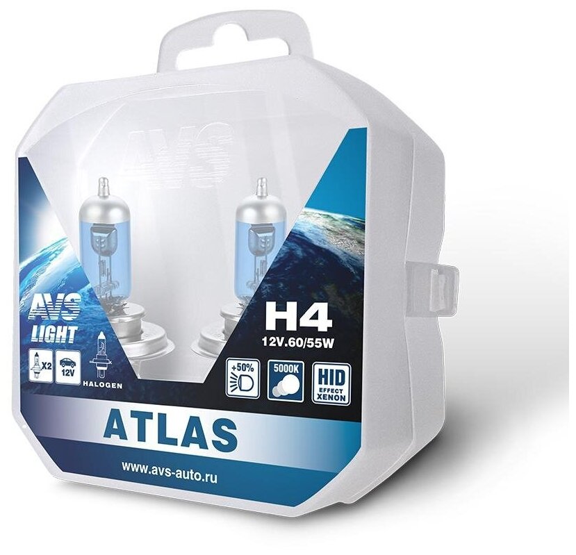 Лампа галогенная AVS ATLAS /5000К/ H4.12V.60/55W блистер, 2 шт. информация: