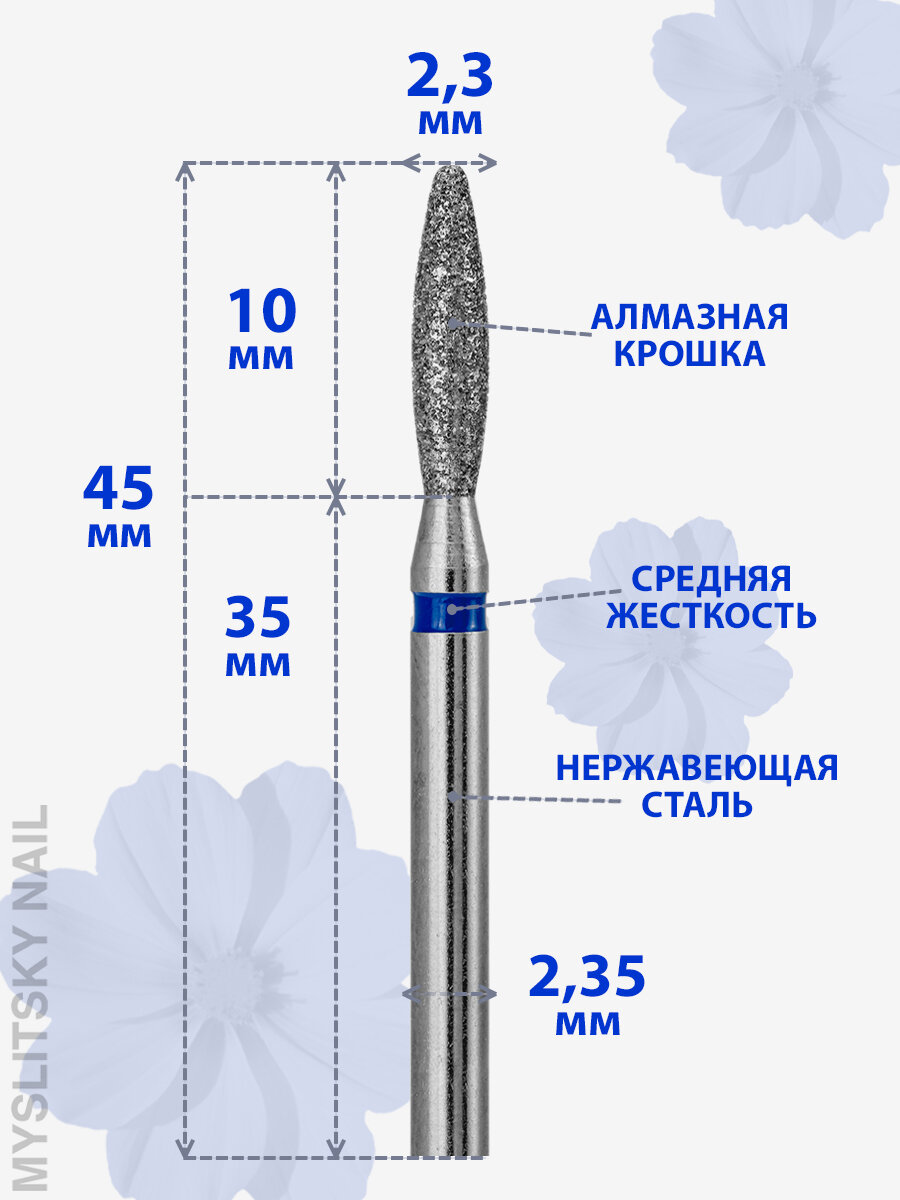 Владмива Фреза для маникюра и педикюра алмазная 806 104 244 524 023 Средняя синяя пламя (5 шт) 579 ₽