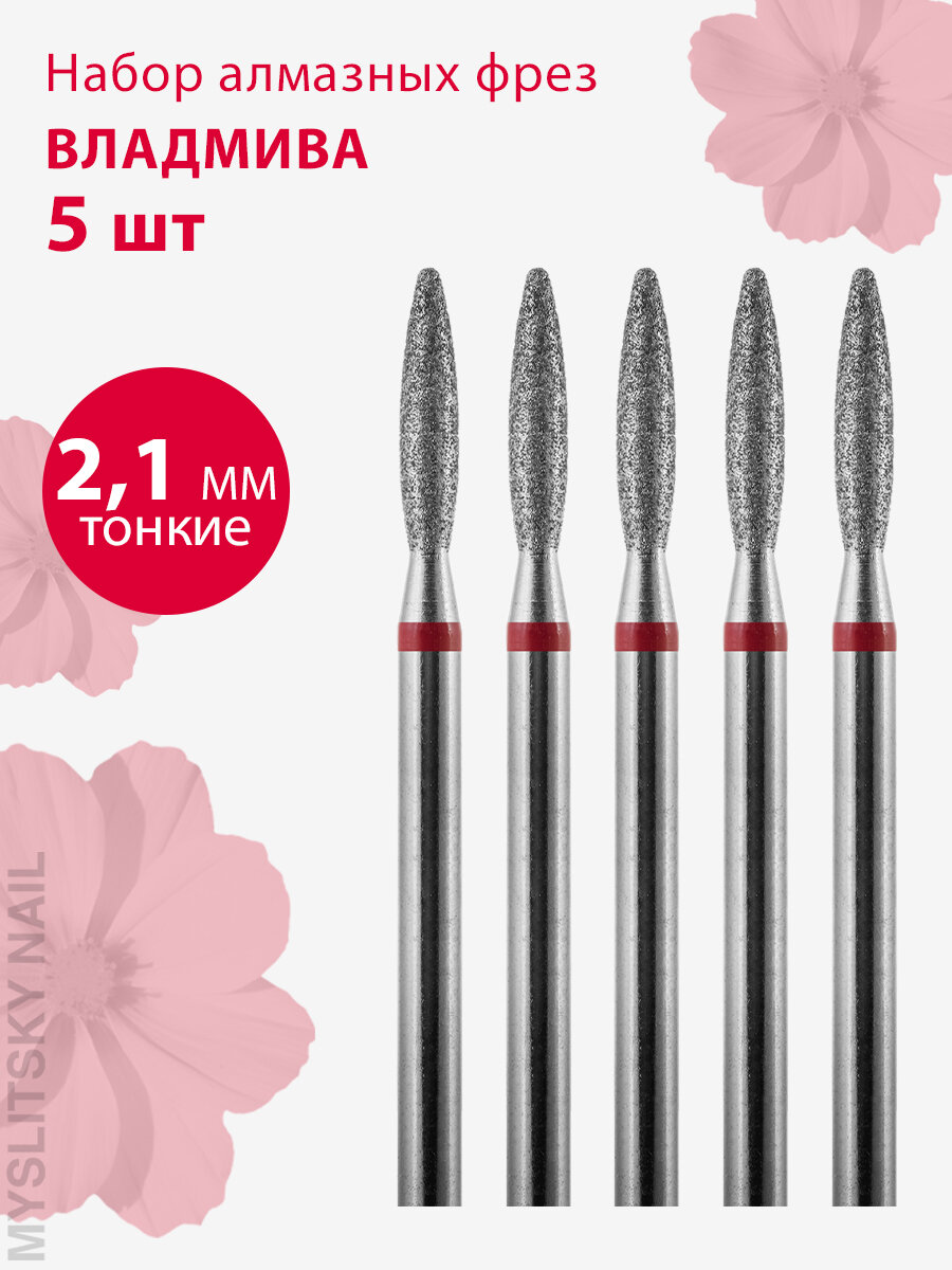 Владмива Фреза для маникюра и педикюра алмазная 806 104 244 514 023 Тонкая красная пламя (5 шт) 499 ₽
