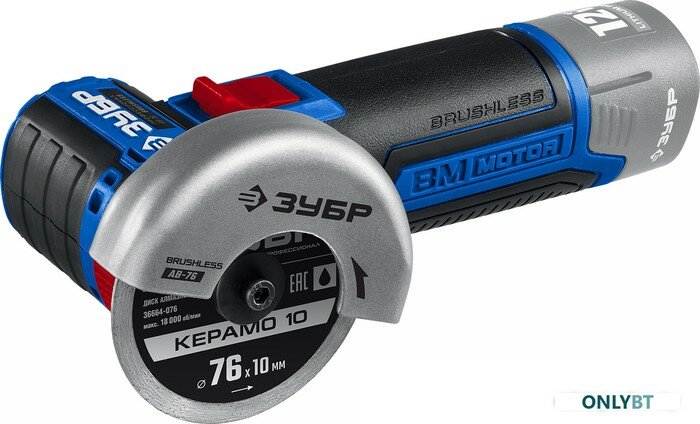 ЗУБР 12В бесщеточная УШМ, без АКБ, в коробке, Профессионал. AB-76