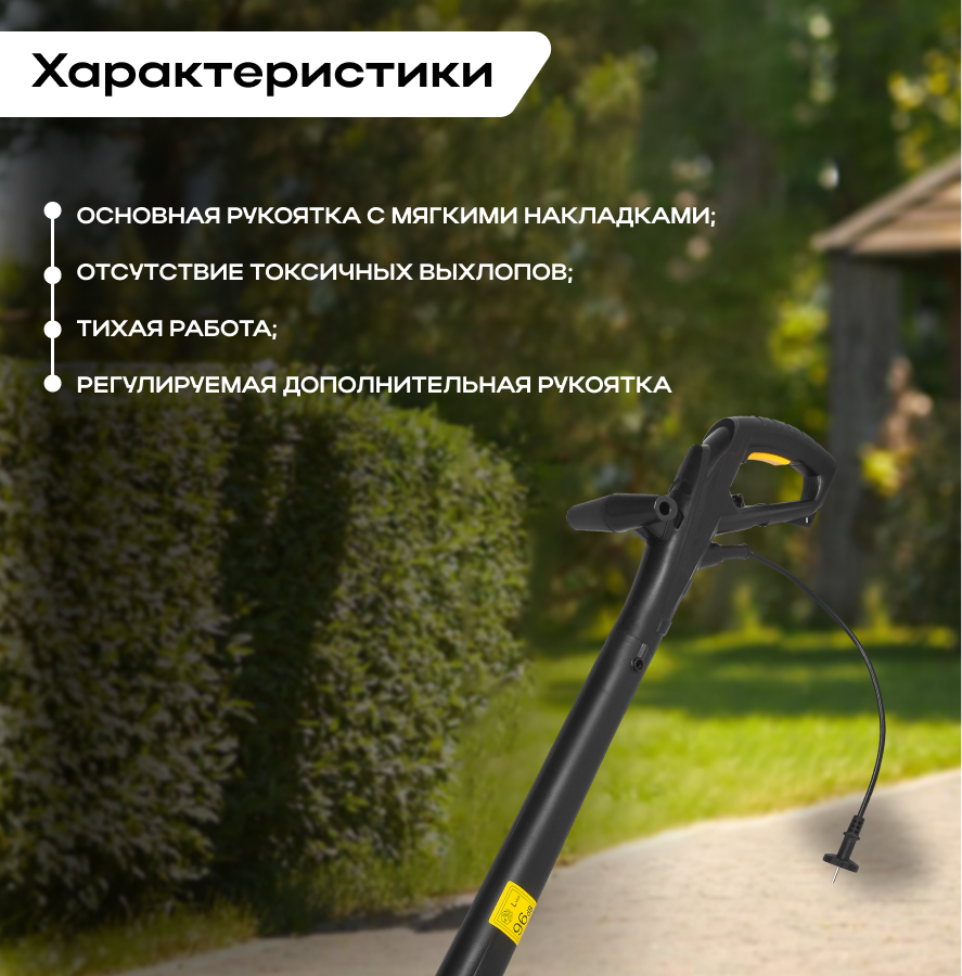 | Конструктивные особенности | регулировка ручки по высоте / складная штанга / Безопасная остановка / Низкий уровень шума / Рукоятка для переноски |