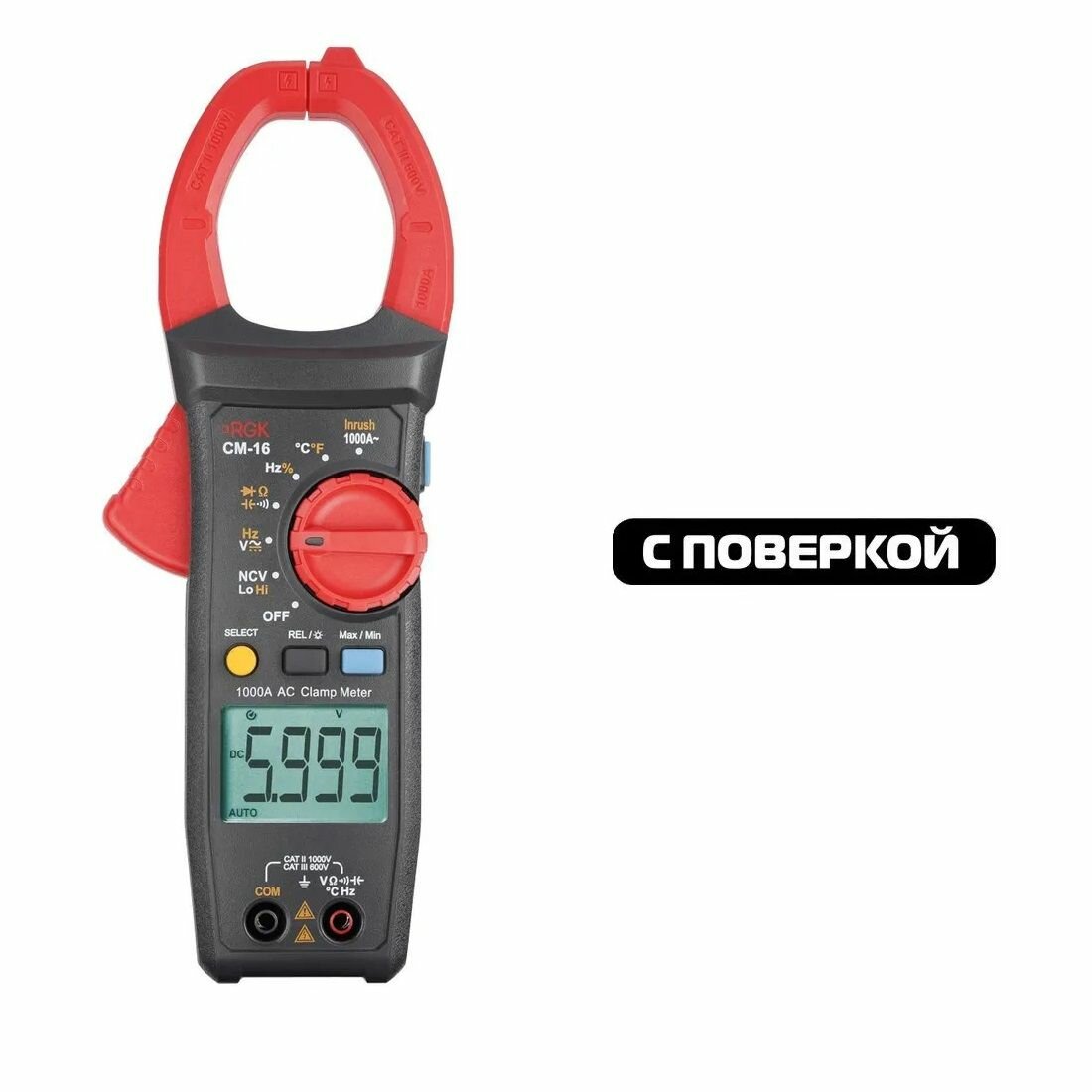 Токоизмерительные клещи RGK CM-16 с поверкой, переменный ток до 1000 А, напряжение до 1000 В, NCV, REL информация: