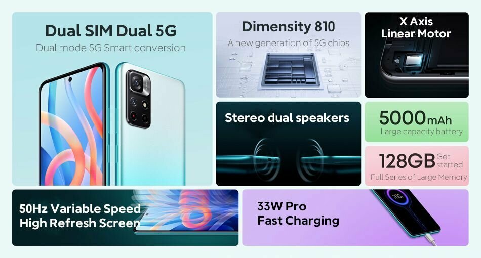 Смартфон Redmi Note 11 5G 6.6 'FHD 90Hz Dimensity 810 8 - ядерный аккумулятор емкостью 5000 мАч 33 Вт информация: