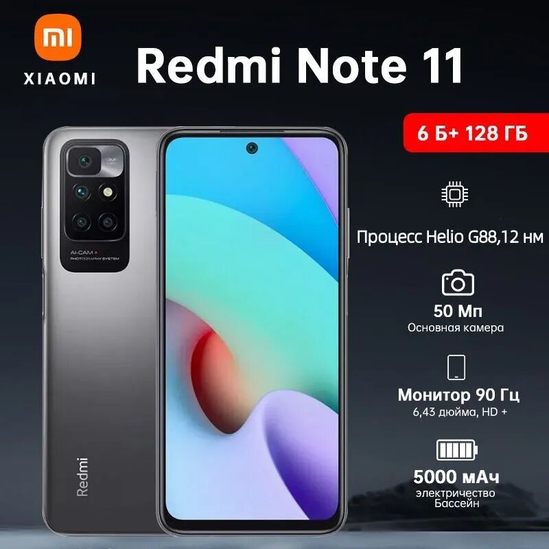 Xiaomi Redmi Note 11 , Android, умное жидкостное охлаждение, большая батарея, , черный 8 ГБ + 128 ГБ информация: