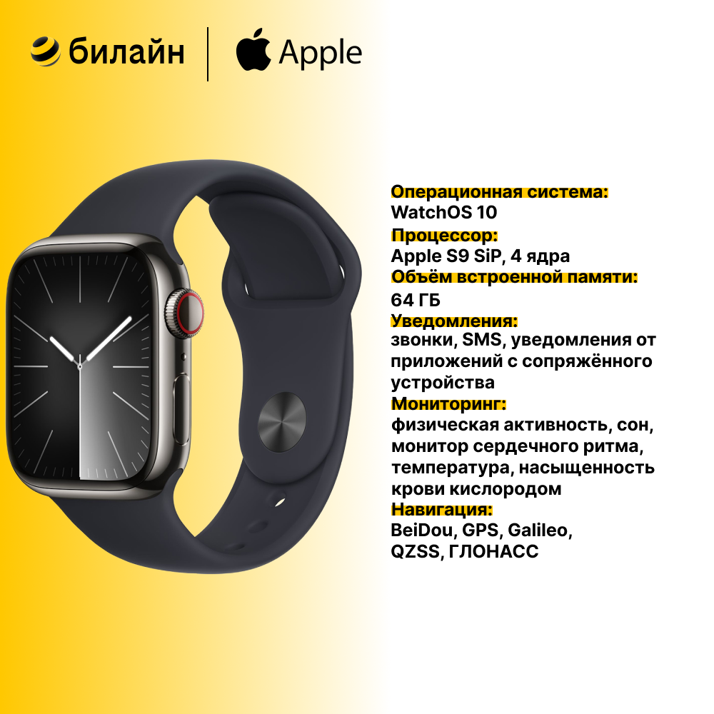 10 цен на Apple Умные часы Apple Watch Series 9, 41 мм, Midnight Sport Band, Graphite Stainless Steel, size M/L (MRM43)