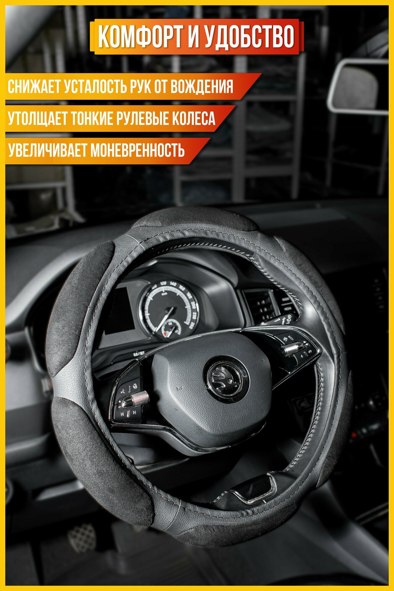 Оплетка на руль Top-12 SKYWAY M (37-39) серый экокожа, S01102501