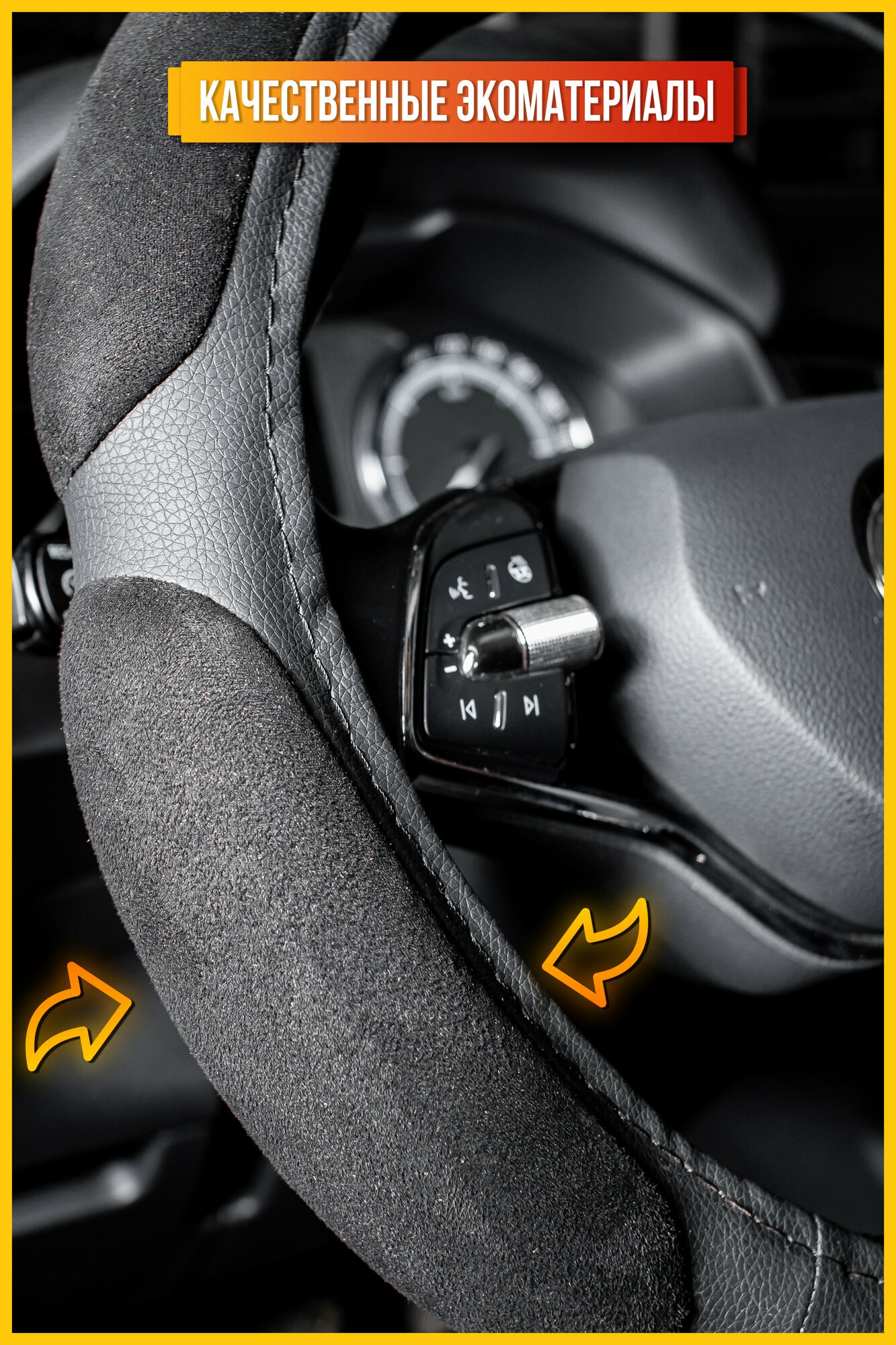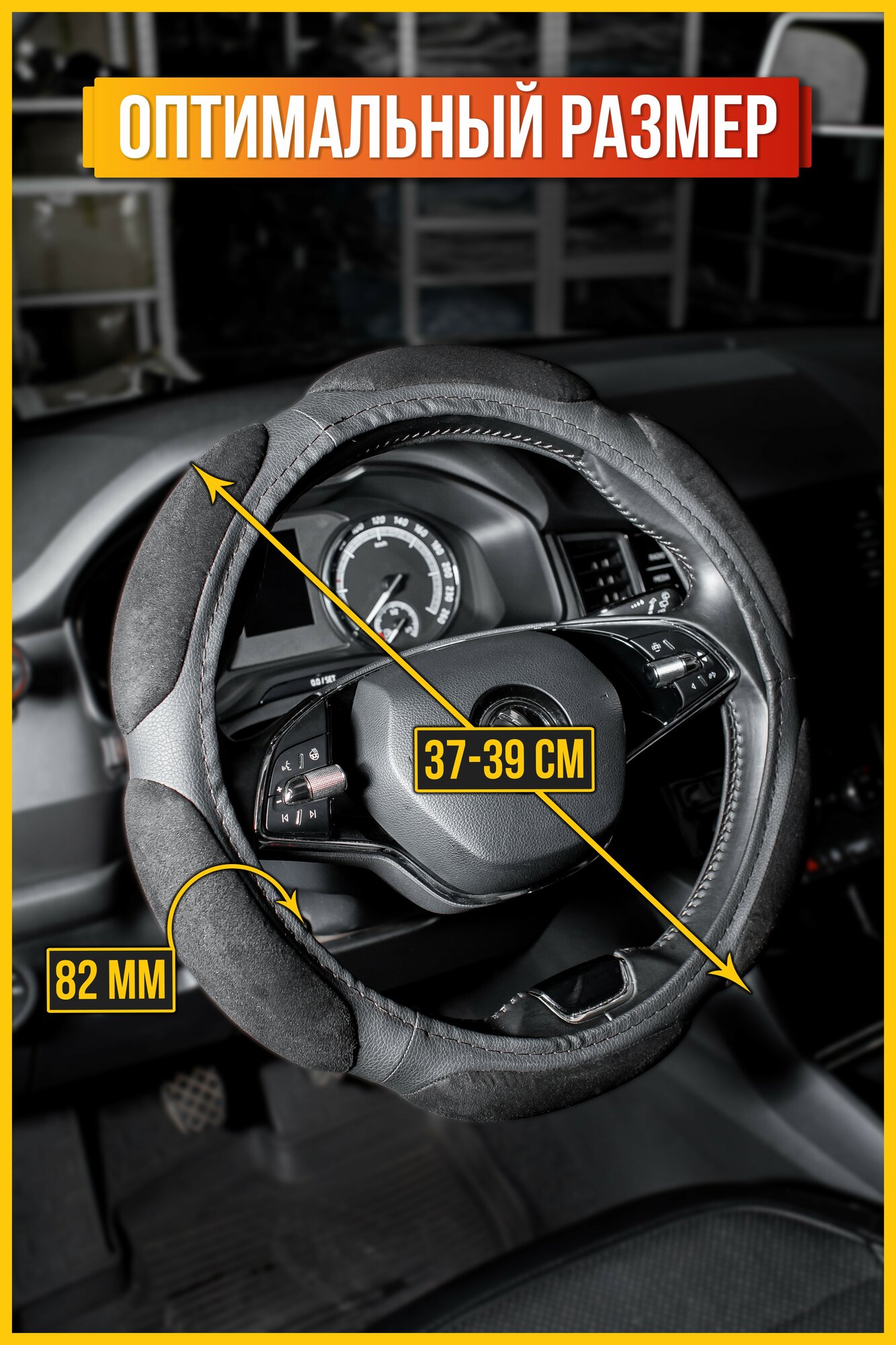 10 цен на Оплетка на рулевое колесо, Автолидер, М(37-39см), (6 подушек спонж, черный, экокожа), красн. упаковка