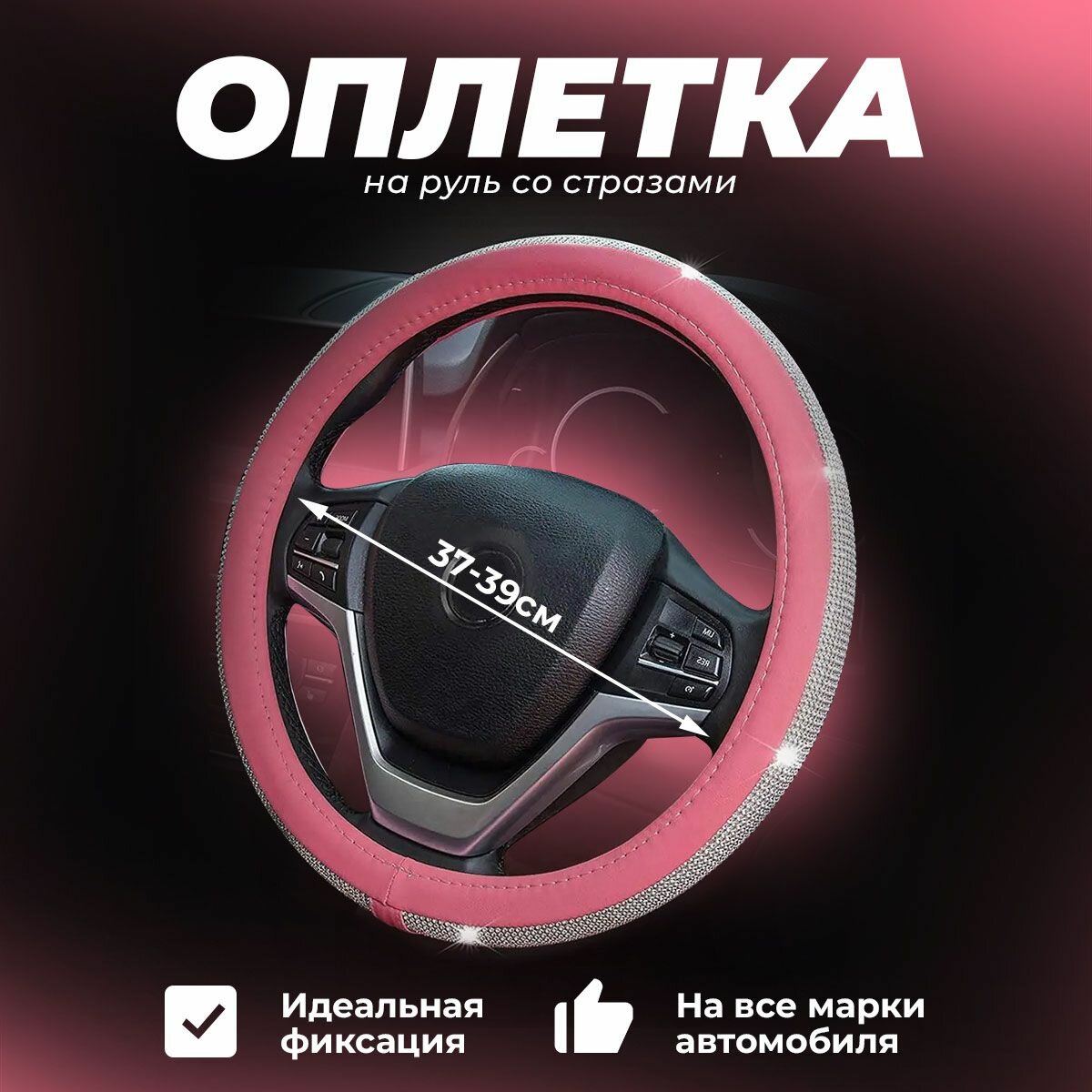 10 цен на Оплетка на руль кожаная со стразами, розовая
