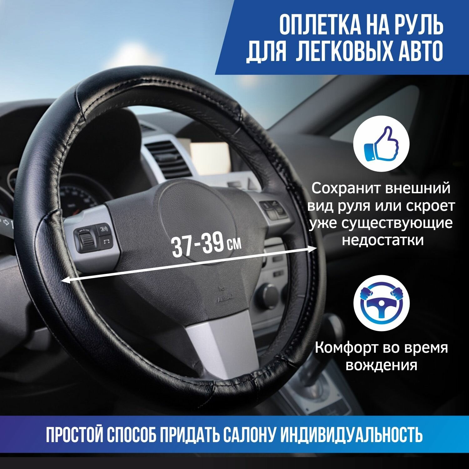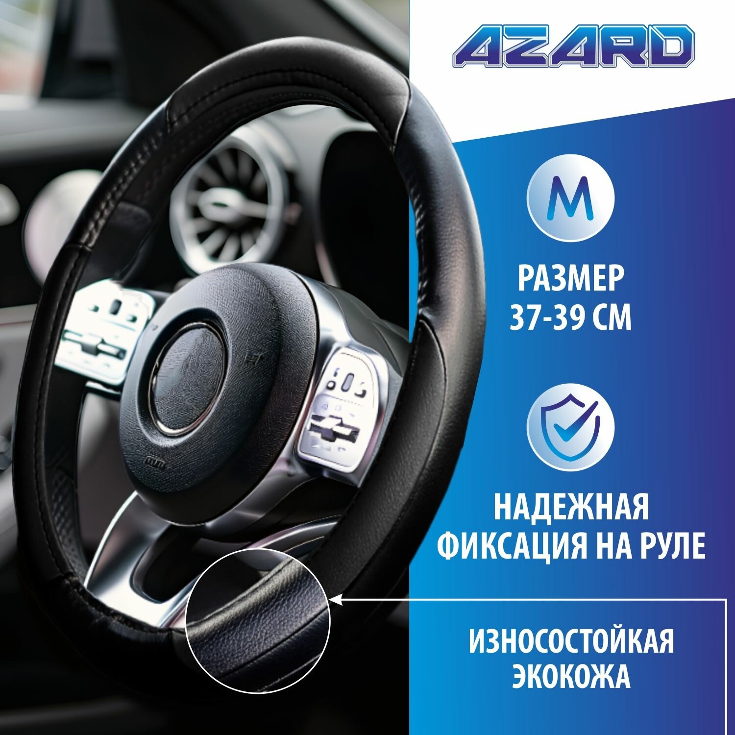 Оплетка на руль 37-39 см (М) AZARD Экокожа, чехол на руль автомобиля информация: