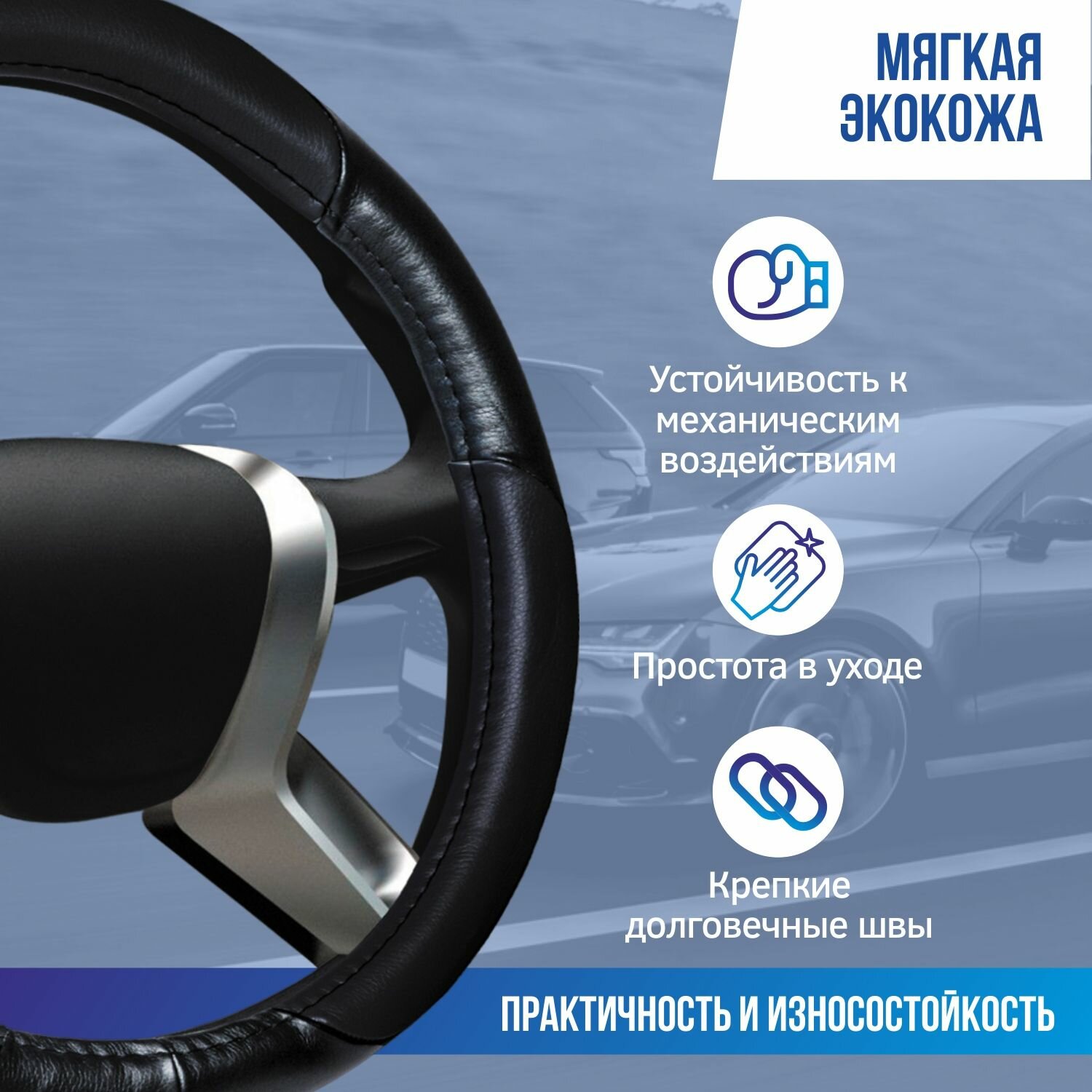 10 цен на Оплетка на руль 37-39 см (М) AZARD Экокожа, чехол на руль автомобиля