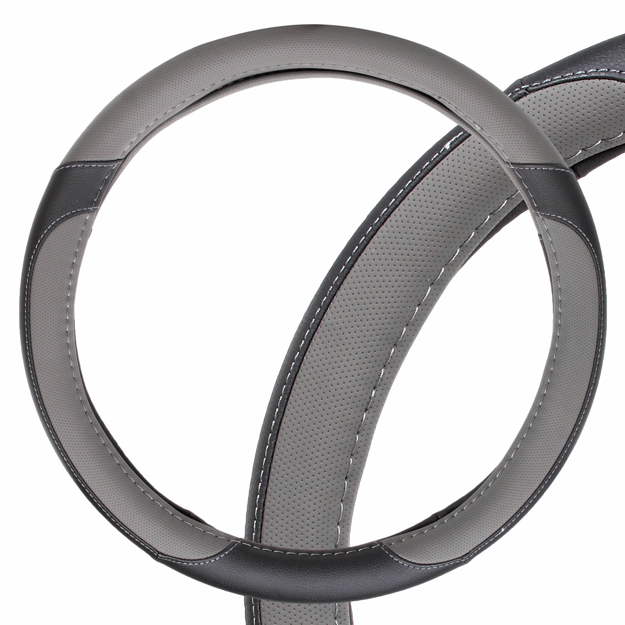 Оплетка на руль, искусственная кожа с перфорацией, серая/черная, 40 см / L (AWC-SL-02L)