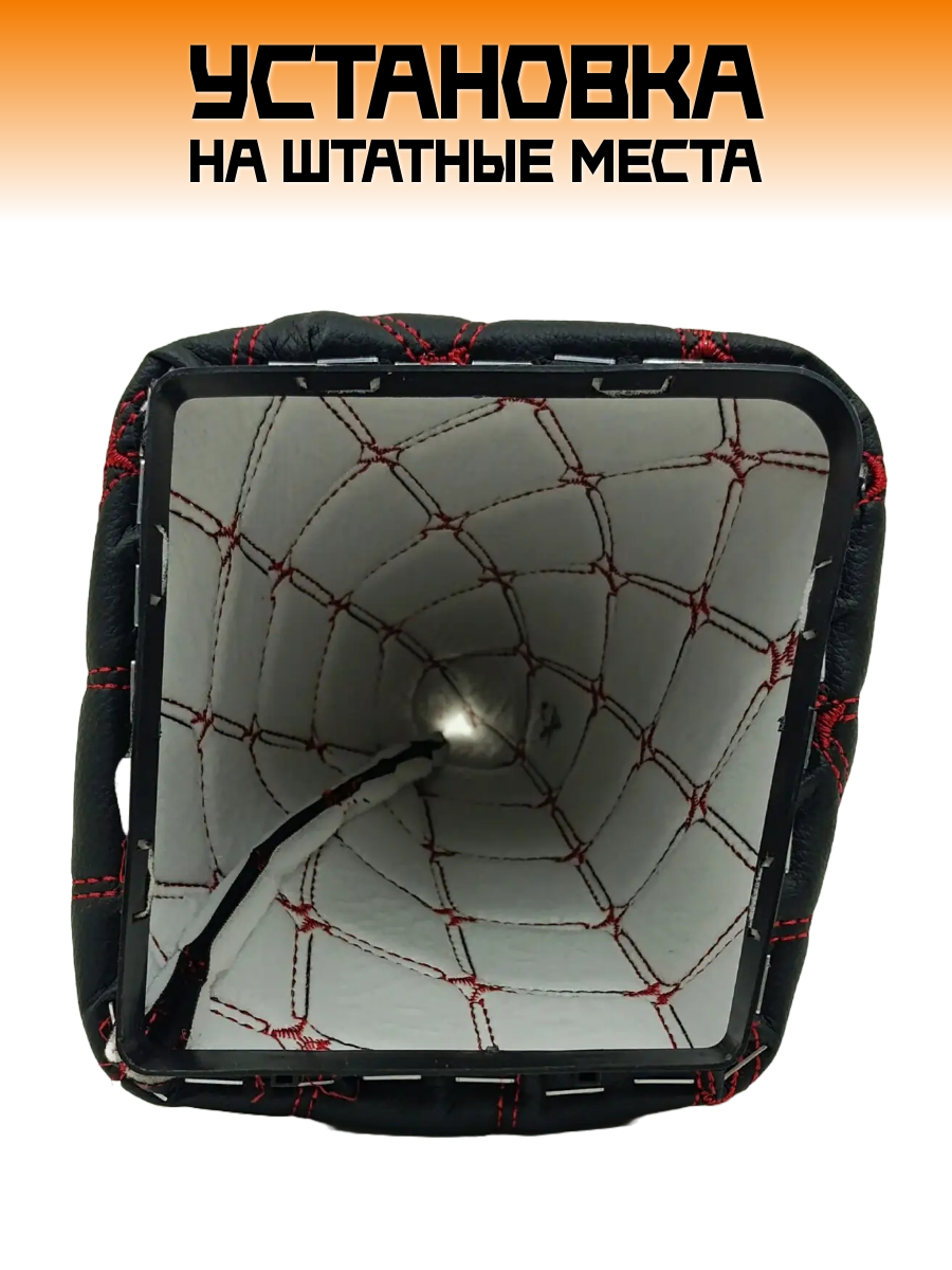 Кожух рычага КПП, экокожа с красной строчкой на ВАЗ 2113, 2114, 2115