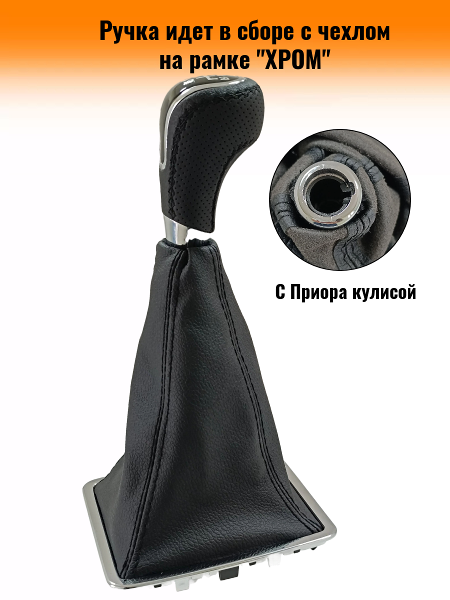 Ручка КПП Mertsavto с чехлом в стиле Весты на ВАЗ-2170 Лада Приора 1 с Приора кулисой, черн. с черн. строчкой рамка хром информация: