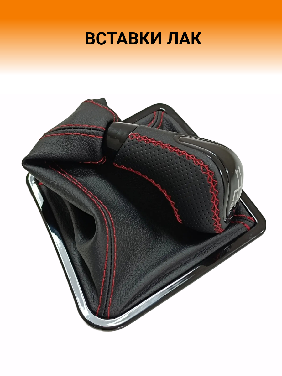 10 цен на Ручка КПП с чехлом в стиле Весты на ВАЗ-2170 Лада Приора 1 с Приора кулисой, черный с красной строчкой "рамка лак"