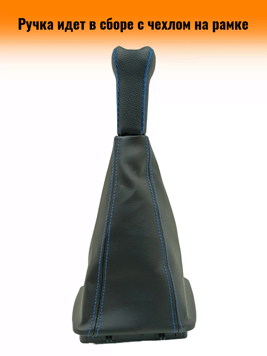 Ручка КПП с чехлом в стиле Весты на ВАЗ-2170 Лада Приора 1 с Приора кулисой, черный с синей строчкой "рамка лак" 2 300 ₽