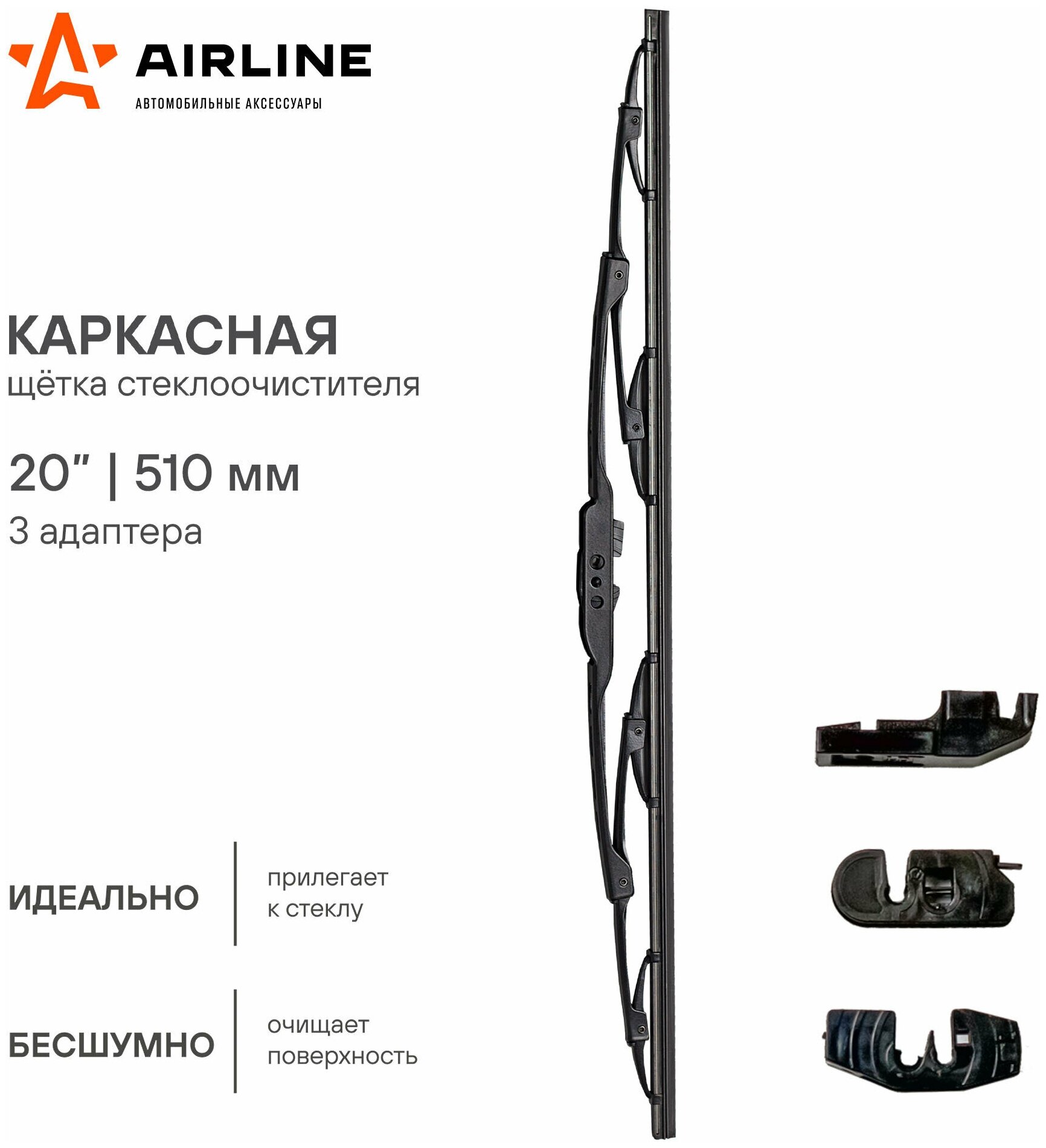 Щетка Стеклоочистителя Каркасная Airline 510 Мм (3 Адаптера) AIRLINE арт. AWBK510