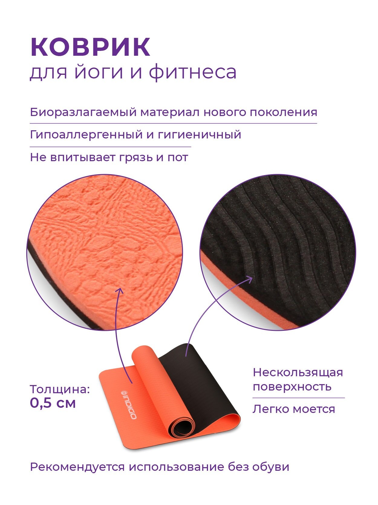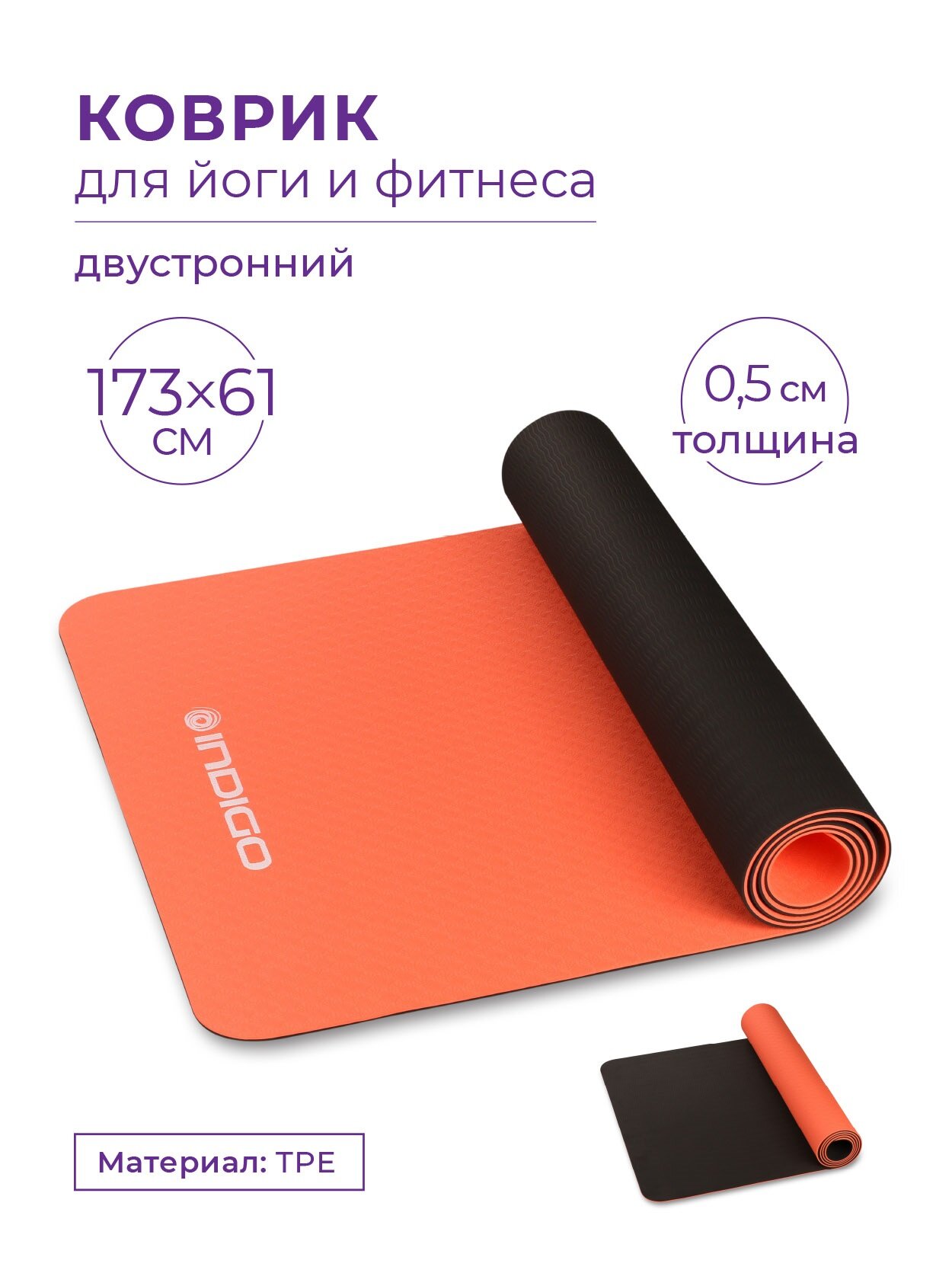 10 цен на Коврик для йоги и фитнеса IN106 INDIGO TPE двусторонний Кораллово-черный 173*61*0,5 см