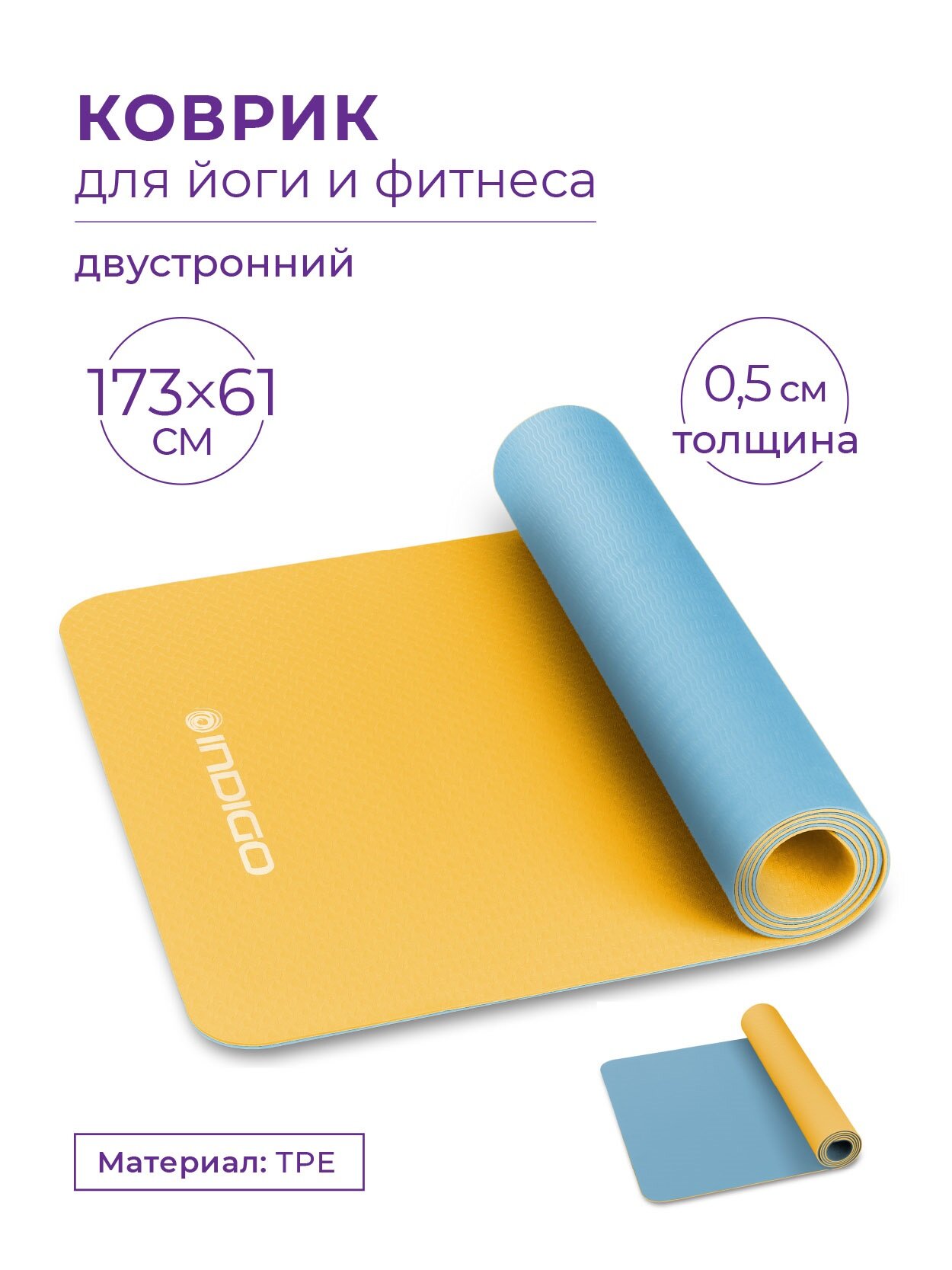 10 цен на Коврик для йоги и фитнеса INDIGO TPE двухсторонний IN106 Желто-голубой 173*61*0,5 см