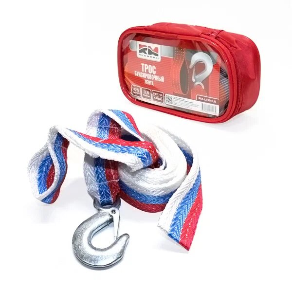 Трос буксировочный лента RedMark, длина 4,5 метра, 3,5 т, петля/крюк, белый/синий/красный цвет информация: