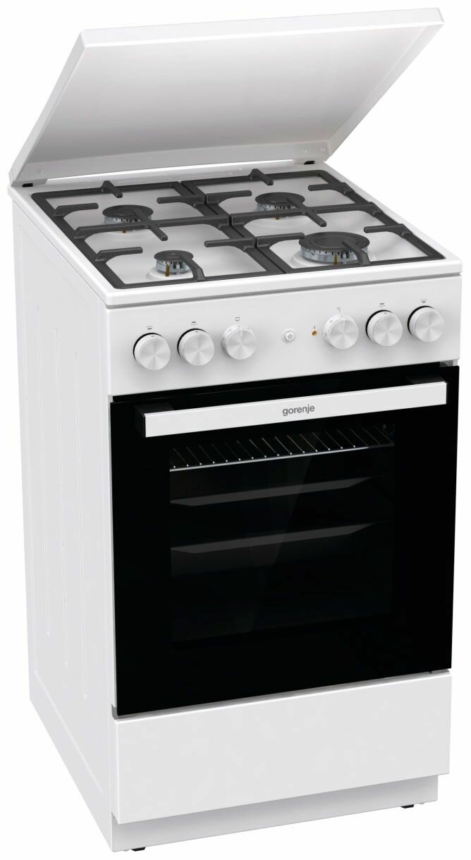 Комбинированная плита Gorenje GK5A42WF-B, 4 газовые конфорки с электроподжигом и газ-контролем, электрическая духовка HomeMADE 62 л, 8 режимов, гриль с вентилятором, белый информация: