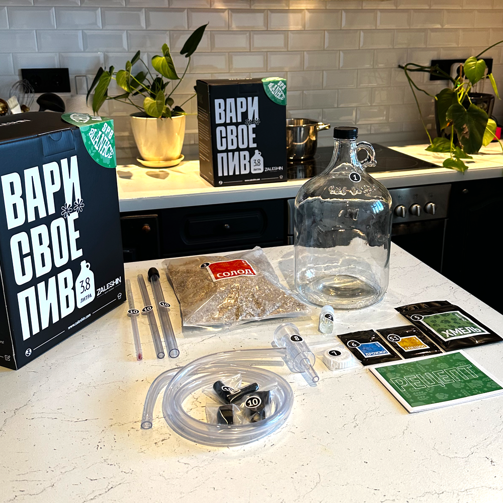 | Дополнительная информация | Кувшин стеклянный 1 галлон (1 шт. ), дезинфектор (10 мг.), солод (750 гр.), хмель (6 гр.), дрожжи пивные (1 гр.), термометр спиртовой (1 шт.), пробка (1 шт.), гидрозатвор (1 шт.), сифон для перелива (1 шт.) |