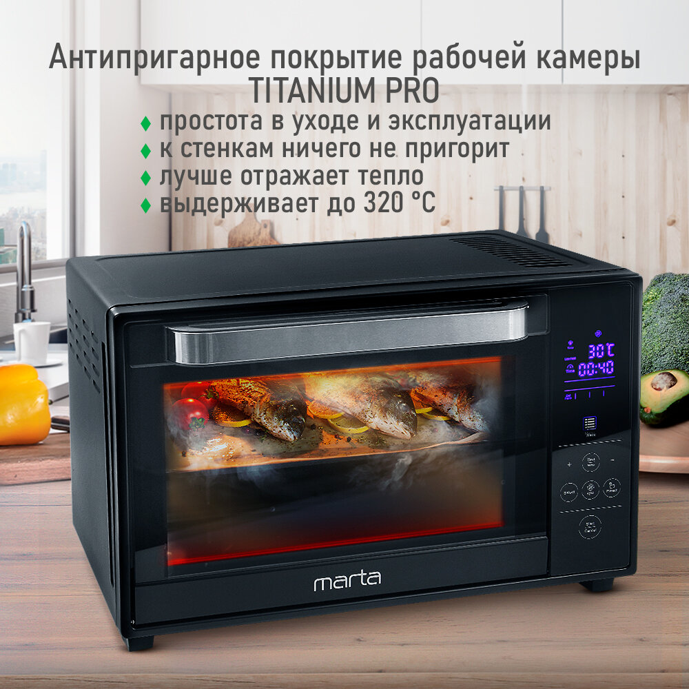 Отзывы на Духовка духовой шкаф мини-печь MARTA MT-EO4288A 30 литров сенсор конвекция шашлычница вертел черный жемчуг