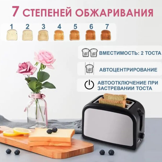 | Дополнительные функции | автоматическое поднятие тостов, плавная регулировка температуры, регулировка степени обжаривания |