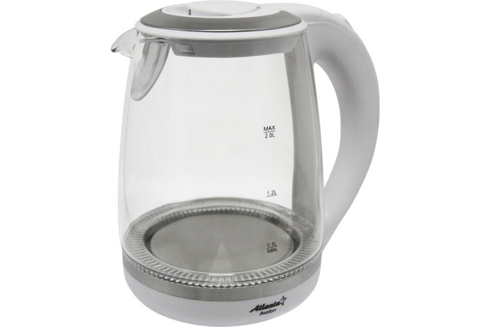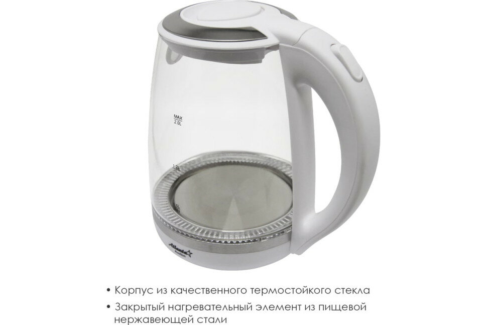 ATLANTA ATH-2471, Чайник электрический, белый, 2л, 2200Вт, стекло информация: