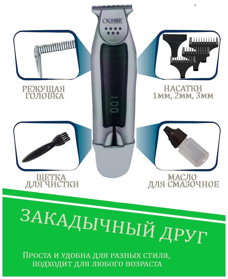 ! Акция! Триммер Cronier 9230А для бороды, усов и тела с тремя насадками в комплект - ! с дисплей для зарядка ! информация: