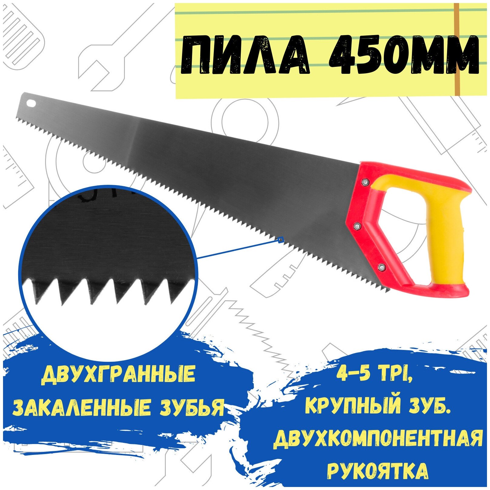 Ножовка по дереву Remocolor Пила по дереву REMOQUICK, 450 мм,шаг 5 мм/ 4-5TPI, 2D-заточка