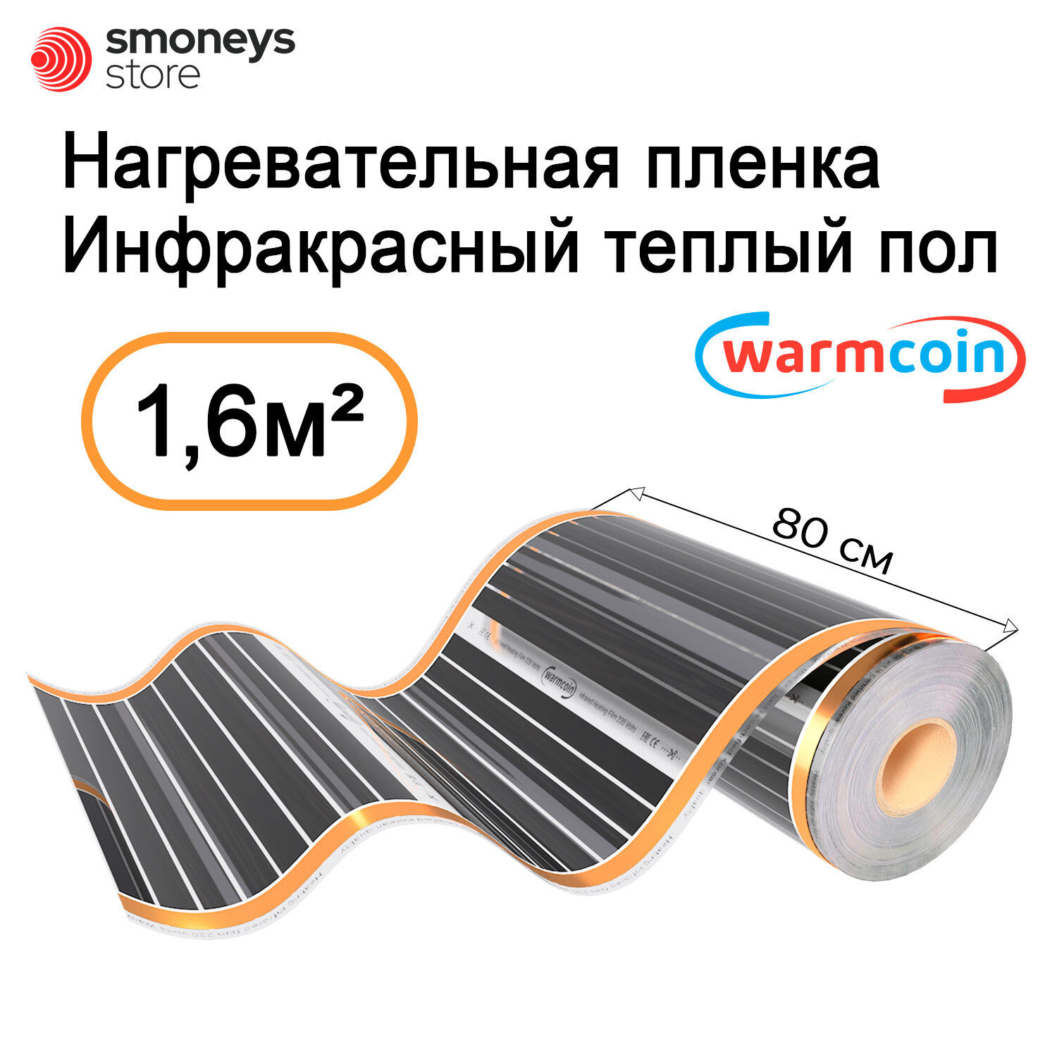 Теплый пол Warmcoin инфракрасный 80см 180Вт/м. кв. под ламинат, 15 м. п 15 315 ₽