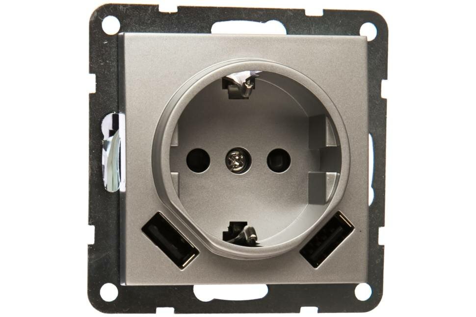 Розетка LK Studio с з/к + 2хUSB разъем, 2А, серебистый металлик 868003-1 информация: