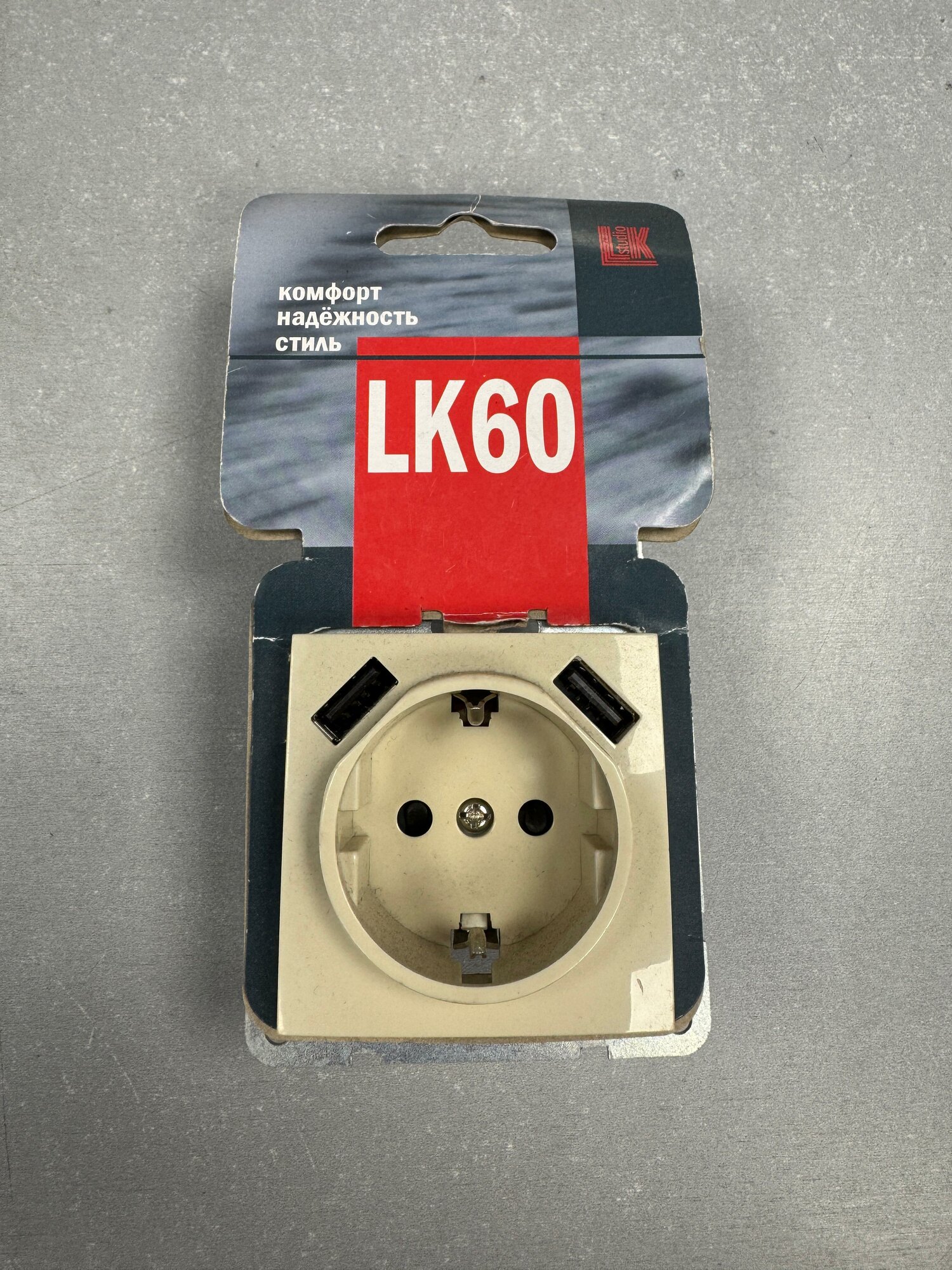 Отзывы на Розетка с заземляющим контактом + 2хUSB разъем, 2А Экопласт LK60, бежевый 868001-1