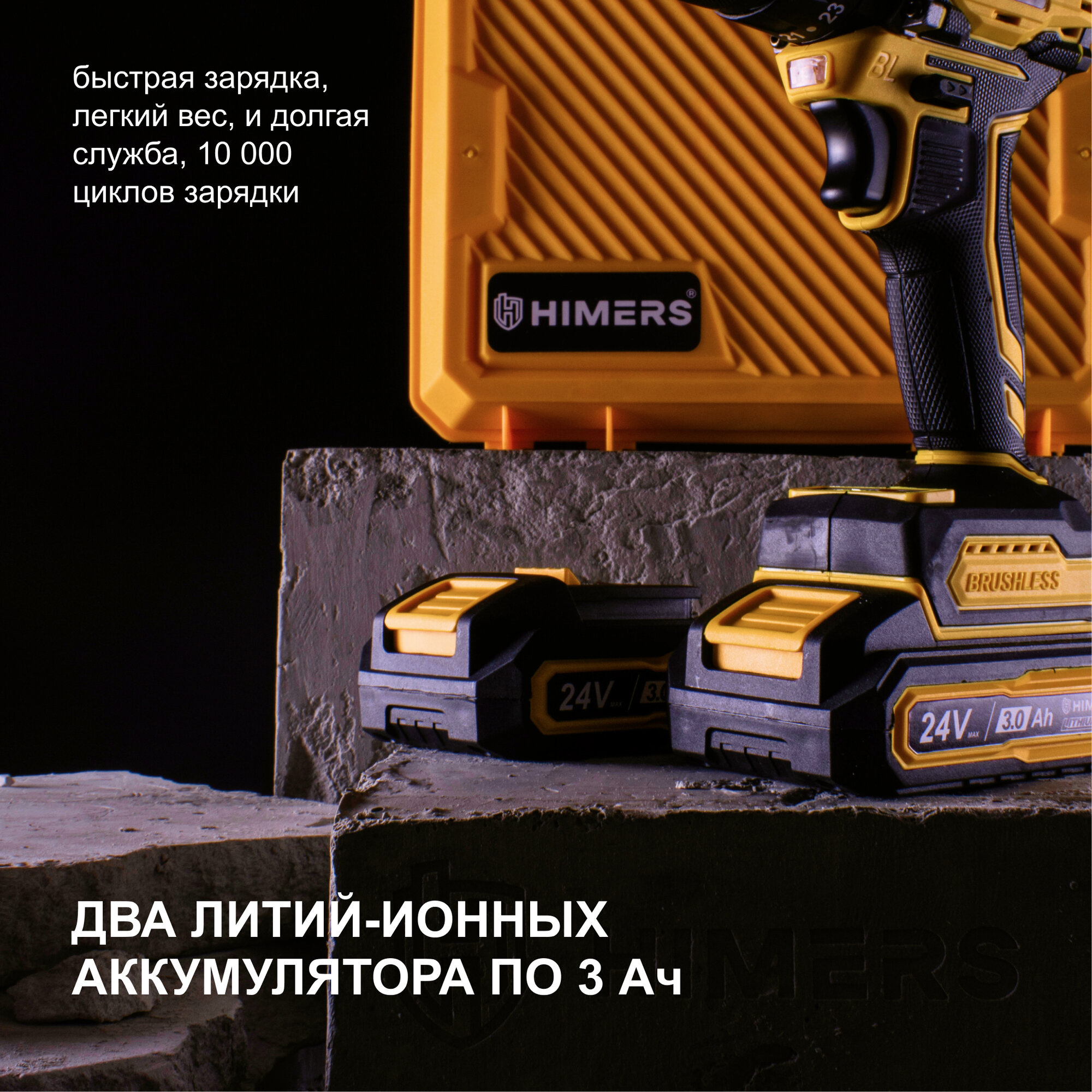 Бесщеточный ударный шуруповерт HIMERS DF85Y-BL аккумуляторный 24V, 2 АКБ по 3 А.ч., 85 Н.м., Версия Yellow special / Кейс / многофункциональный для сверления, закручивания 24в 10 000 ₽
